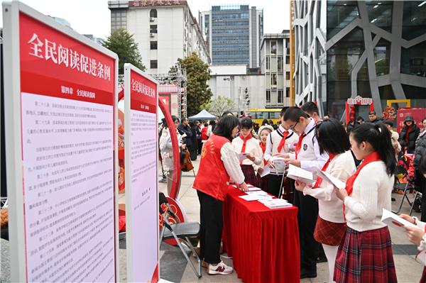 活动现场设立《条例》主题宣传区,将宣传融入趣味体验,“知识问答”专区围绕“少儿阅读保障”“基层资源覆盖”等核心条款设题,读者答对可获条例解读手册,在答题中明晰阅读权利。工作人员现场答疑,详解免费借阅、数字资源开放、公益活动进基层等服务,让《条例》从“纸面”走进生活。