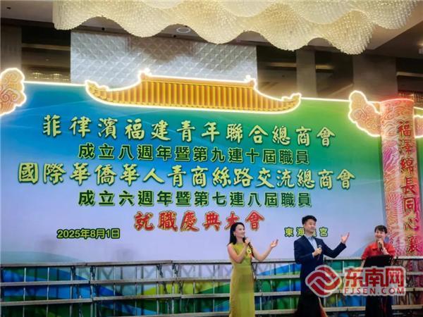 东南网8月4日讯(特约记者 洪宾宾)当地时间8月1日,菲律宾福建青年联合总商会成立八周年暨第九至十届职员、国际华侨华人青商丝路交流总商会成立六周年暨第七至八届职员(以下简称“两个总商会”)在马尼拉举行庆祝新届理监事职员就职典礼(以下简称“就职典礼”)。侯明智、洪天亮、蔡清海担任两个总商会新一届联席会长。