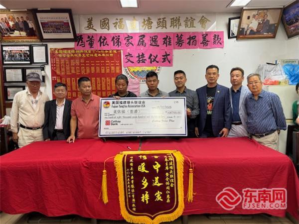 东南网9月8日讯(特约记者 纽约墨人)当地时间9月2日,美国福建塘头联谊会在其纽约会所举行为遇难塘头乡亲董依俤(董潘)家庭募捐善款10多万美元的交接仪式(以下简称“交接仪式”)。