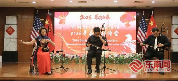 东南网2月8日讯(特约记者 白水 纽约墨人)当地时间2月6日,中国驻纽约总领馆举行2026年侨学界新春招待会(以下简称“招待会”)。中国驻纽约总领事陈立出席招待会并致辞,领区侨学界代表600余人参加招待会。