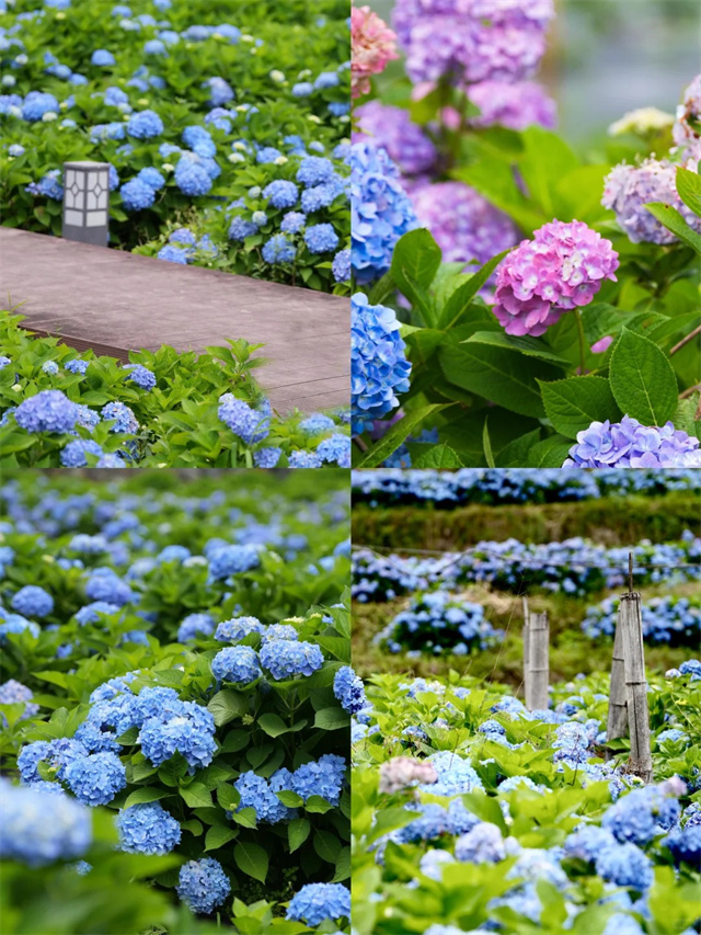 by the min river in liangdi village, minhou, thousands of acres of hydrangeas are in full, dazzling bloom! clusters of blue, purple, pink, and white blossoms stretch like a sea, harmonizing with lush olive groves and rustic chaitacuo (traditional fujian houses), painting a pastoral scene unique to fuzhou's cultural charm. this hidden summer paradise offers more than just flowers—stroll through the fields and savor fresh olive juice or fragrant jasmine tea, immersing yourself in the refreshing taste of "mountain-sea fujian."