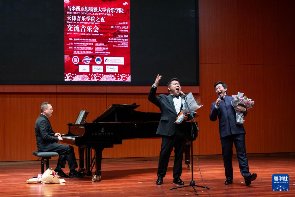 悠扬的小提琴声缓缓响起,与钢琴、大提琴相伴呈现一曲《炎黄风情—对花》,中国歌唱家深情演绎马来西亚民谣《拉莎莎扬埃》,琵琶拨响的《春江花月夜》婉转悠扬……当晚,天津音乐学院携手马来西亚思特雅大学音乐学院,献上一场跨越国界的交流音乐会,为马来西亚各界人士以及在马华侨华人、留学生等带来一场饱含深情的艺术盛宴。