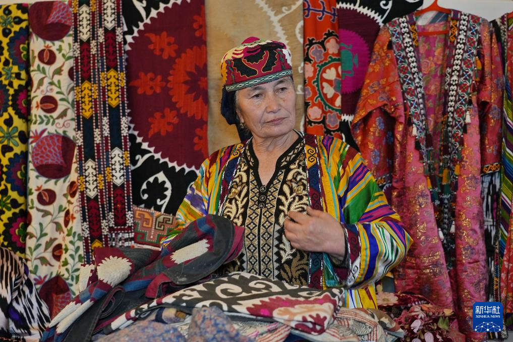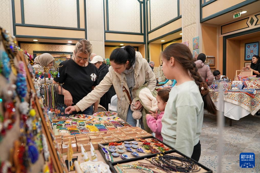 当日,乌兹别克斯坦首都塔什干举办传统手工艺品展,来自该国各地的100余位手工艺人在现场展示服装、玩偶、首饰等各具特色的手工艺品。