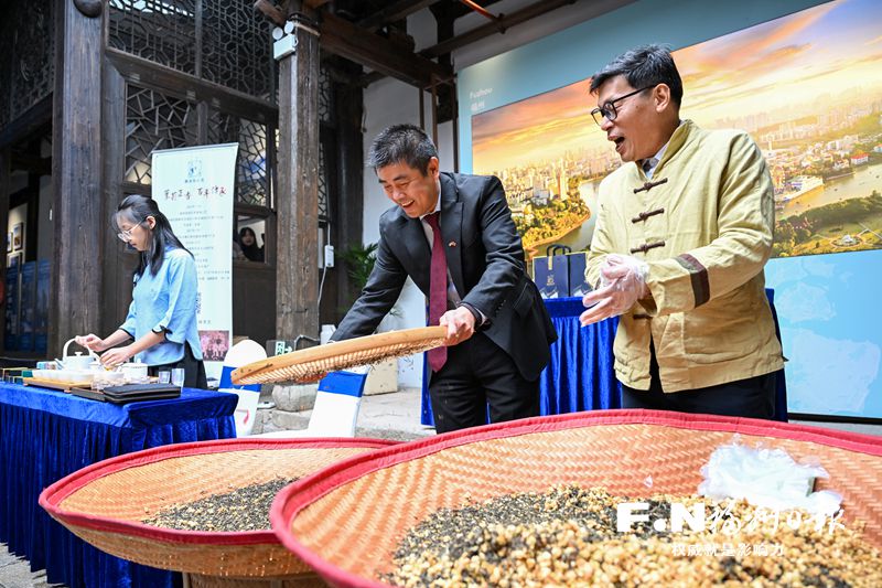 现场还有异域风情展览、福州市城市地标套章明信片套章制作、民乐演奏等活动。嘉宾沉浸式欣赏和体验福州非遗文化,如茉莉花茶窨制非遗工艺、福州非遗漆艺等。
