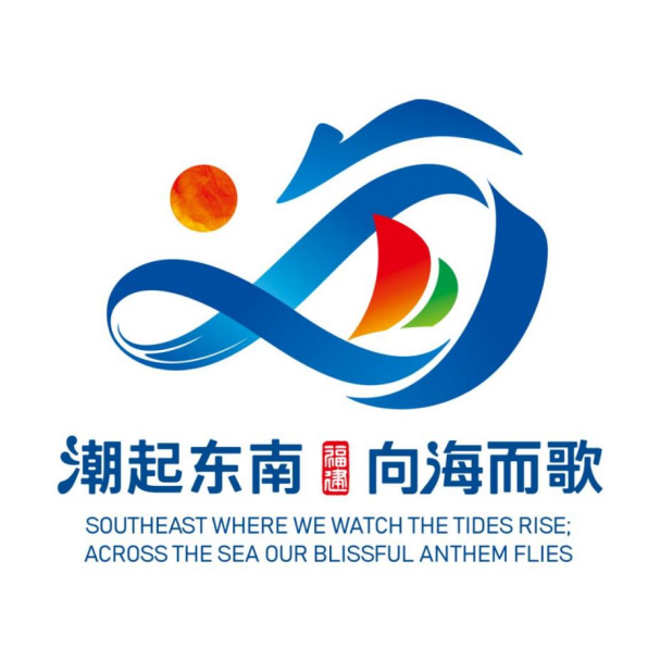 福建省海洋文化宣传标识以“海”字演化为无穷大符号,嵌入福建首字母“fj”,喷薄而出的太阳、乘风破浪的福船、展翅高飞的海鸥,象征着海洋塑造了福建人开放包容的胸怀和敢为人先、爱拼会赢的开拓创新精神。在颜色选用上,标识以红色象征新时代新征程,蓝色象征海洋强国宏伟蓝图,绿色象征陆海统筹、山海交响,寓示福建正乘势而上、扬帆远航。
