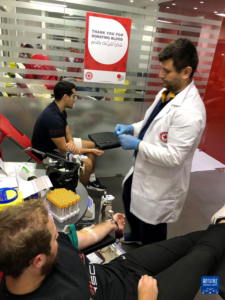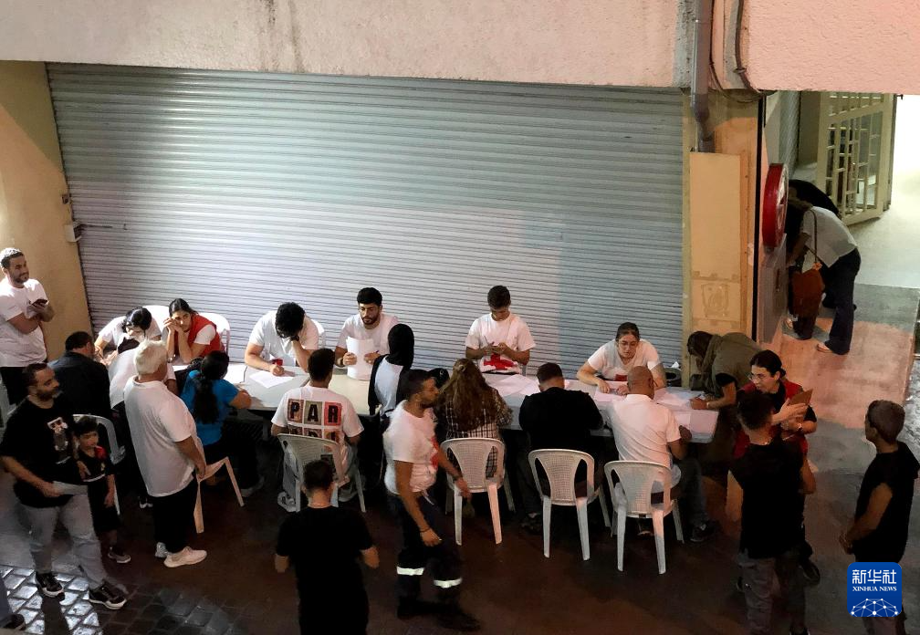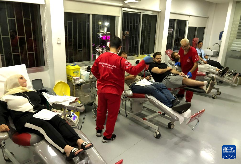 9月17日,在黎巴嫩贝鲁特,人们为传呼设备爆炸事件伤者献血。新华社发(比拉尔·贾维希 摄)