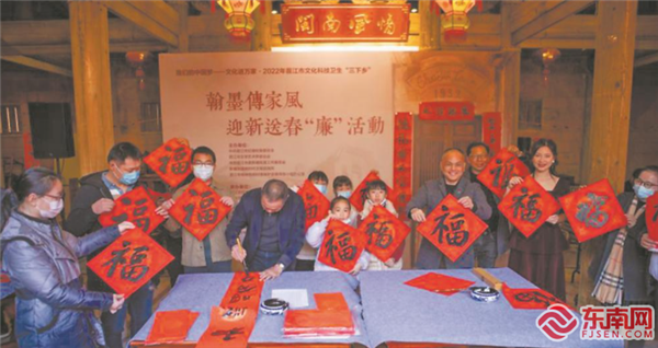 东南网1月19日讯(福建日报记者 王敏霞 通讯员 林晓燕 刘翼 文/图)春节临近,古厝送“福”。2022年晋江市文化科技卫生“三下乡”活动日前在梧林传统村落闽南风情馆举行。