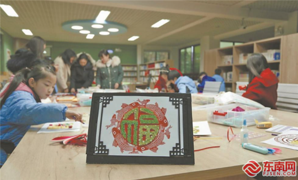 日前,在松溪县松航小学,老师指导学生和家长将彩色卡纸裁成纸条,运用卷、捏、拼贴组合等方法,创作出一件件充满立体感的“福”字衍纸作品。福建日报记者 赖昊拓 通讯员 林清辉 黄鑫 摄