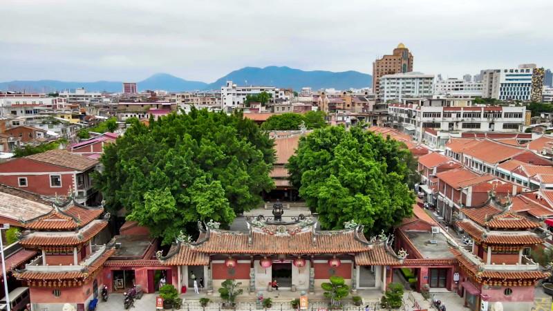 chengtian temple, located in the licheng district of quanzhou, fujian, is also known as yuetai temple. this alternative name comes from the two glistening golden characters for "yue tai (moon terrace) " inscribed on the plaque above its main gate.