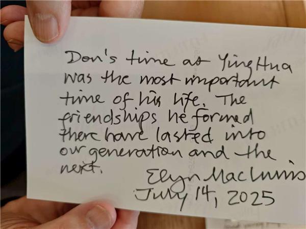 穆言灵穆蔼仁在1994年回到洋口(英华)中学的照片背面写下留言。
