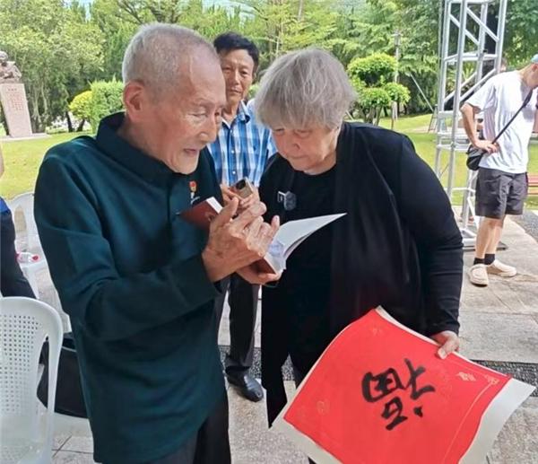 7月14日一早,101岁的陈世明就来到了三山人文纪念园等待穆言灵。“祝福你healthy,happy,hopeful(健康、快乐、充满希望)。”80多年过去了,一见面,陈世明依然能用当年穆蔼仁教他的英文流利地与穆言灵交谈,并赠送给她一幅自己亲手写的“福”字。