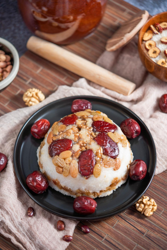 on new year’s eve, the whole family sits together and shares a bowl of eight treasure rice. the soft rice aroma, smooth red bean paste, and the sweet-and-sour taste of preserved fruits blend in the mouth—this is the true flavor of the new year.