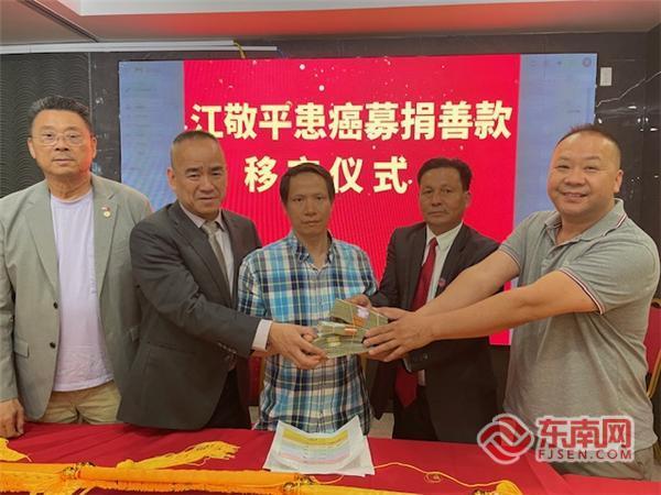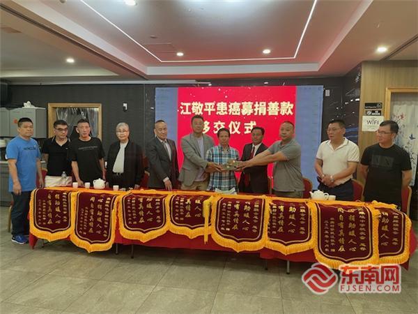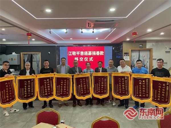 东南网7月23日讯(特约记者 纽约墨人)病魔无情,人间有爱。当地时间7月22日,美国琅岐农旗联谊会等九个侨团向患病乡亲江敬平移交募捐善款73000多美元。美国琅岐农旗联合总会会长江敬端、常务副会长林文达,美国福州琅岐联合总会会长江富春,美国亚总会会长陈善庄,美国琅岐校友会、红光联谊会总顾问陈奋勇,美国星辉联谊会会长江典萍,美国勤耕联谊会执行主常江常流、理事长江晓,美国海屿联谊会代表翁麟以及吴庄教育基金会代表等参加当天移交募捐善款仪式。美国福州琅岐联合总会秘书长江晓主持仪式。