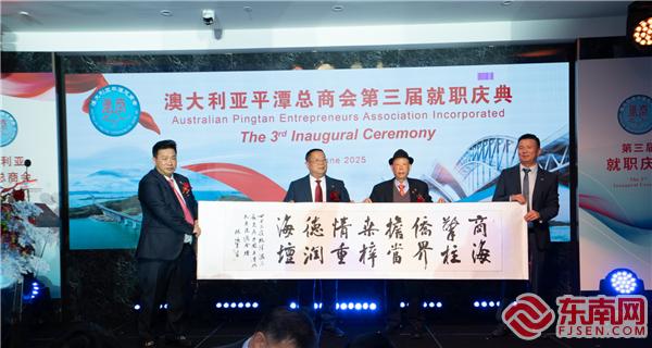 东南网6月23日讯(特约记者 一禾)当地时间6月22日,澳大利亚平潭总商会(以下简称“总商会”)第三届理监事会就职典礼(以下简称“就职典礼”)在悉尼隆重举行,林我宏荣任新会长。中澳政商界、侨界及兄弟商会的近400位嘉宾与会员代表齐聚一堂,见证就职典礼盛典。