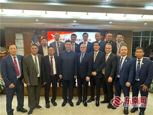 美东侨界闽籍侨领陈伦东、卢建顺、陈昭银、郑振何、王纲勇、张云、陈键榕、张子爱、王钦滨、张恭信、陈武、郑德欣、王瑞银、陈学顺、王永应、余光武、梁守表、陈云、林新、郑君国、卢扬明、郑碧芳、黄新田、林利锋、郭绍铨、陈金杰、陈爱金、郑润、陈秋英俤、张胜旺、郑敬桂、林德明、卢天星、陈葆顺、陈葆铣、董用春、郑明棋、张元丰、张子南、张辉、郑美新、胡扬德、陈宝第、林立光等与中国驻纽约总领馆领区十州近700名侨学界代表一同参加专场招待会。
