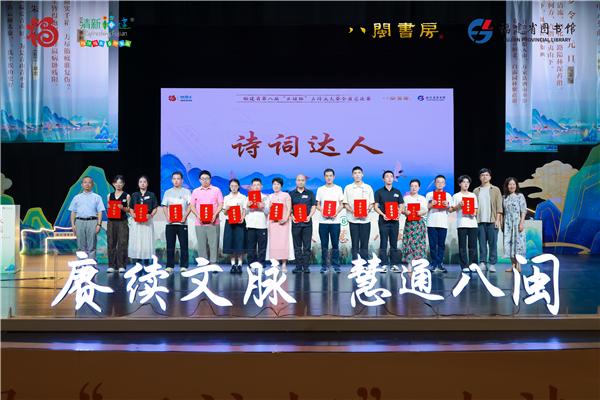 本次决赛活动由福建省图书馆(福建省古籍保护中心)、福建省图书馆学会、中共安溪县委宣传部、安溪县文化体育和旅游局联合主办,以“赓续文脉 慧通八闽”为主题,通过创新赛制与资源下沉,吸引了来自山东、浙江、广东等全国多省的诗词爱好者同台竞技。决赛现场设置相见欢、满庭芳、浪淘沙、破阵子、定风波等环节,经过激烈角逐,最终,选手倪庆贺获得一等奖,王子龙、傅希获得二等奖,张智捷、毛微微、曾浩晔获得三等奖,雷海为等14位选手获得“诗词达人”称号。