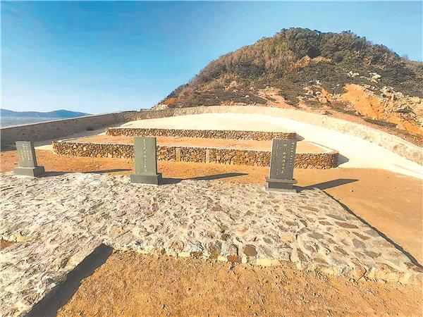沿着平潭钟门村猫头墘山南麓的小径下行,穿过一片滩涂,便能看到平潭琉球墓群。这座墓群背北临海,分上下两层呈台阶式排列,每层长4米、宽17米,占地面积约160平方米,三合灰土封顶的墓前,粗石条墓碑上刻着墓主的姓氏、职务与籍贯。