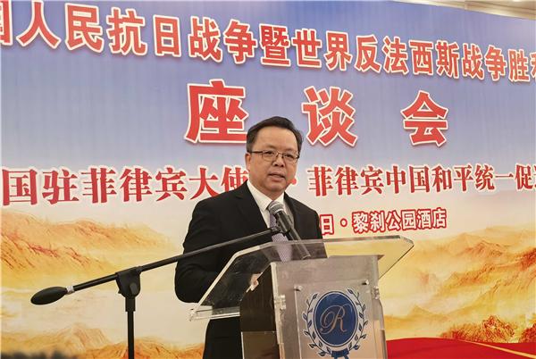 东南网8月28日讯(特约记者 洪宾宾)近日,中国驻菲律宾大使馆联合菲律宾中国和平统一促进会,举办纪念中国人民抗日战争暨世界反法西斯战争胜利80周年座谈会(以下简称“座谈会”)。中国驻菲律宾大使黄溪连、菲律宾中国和平统一促进会会长黄俊人、菲华50余个社团负责人及相关华校师生代表近250人出席座谈会。